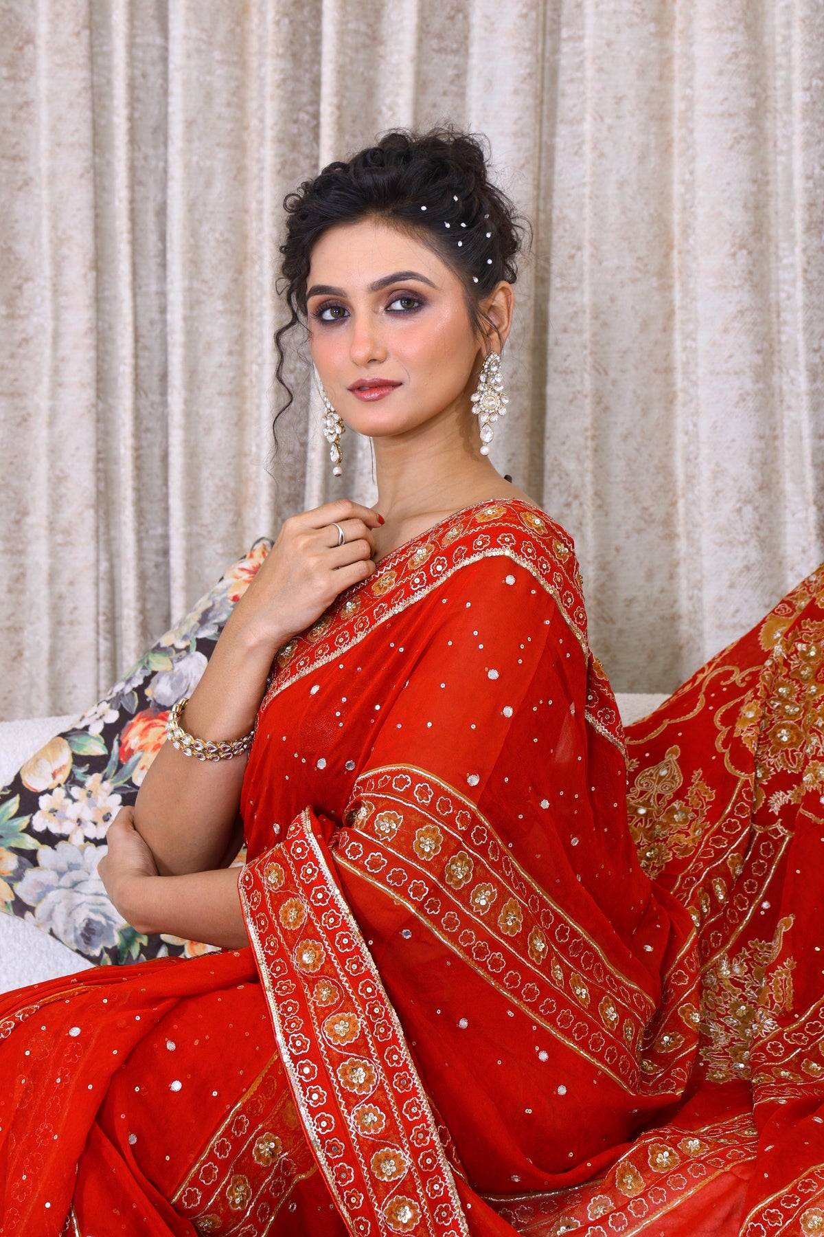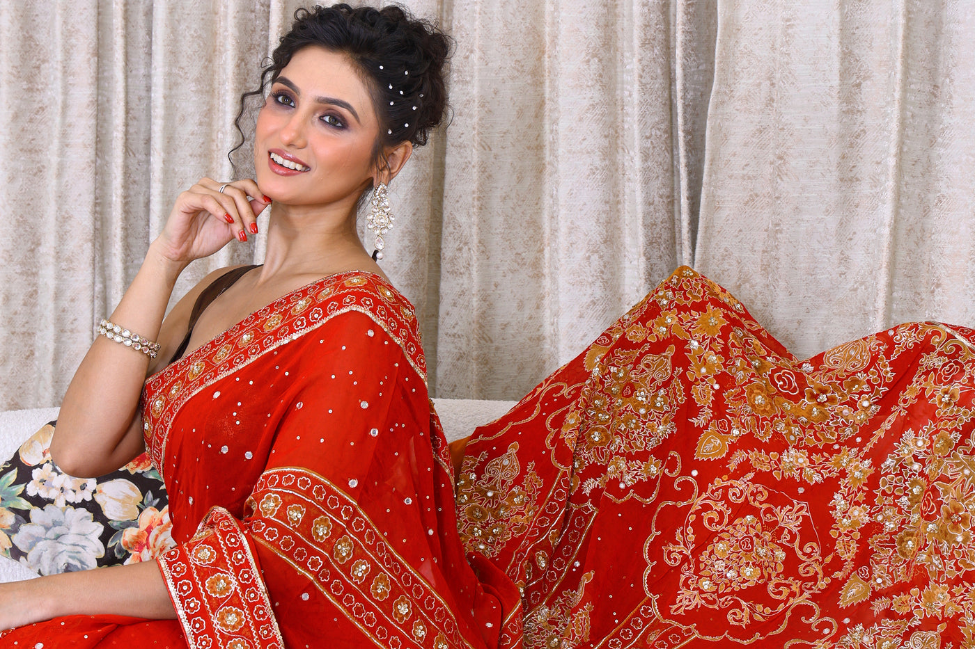 Dry clean only to maintain the integrity of the fabric and zari work.