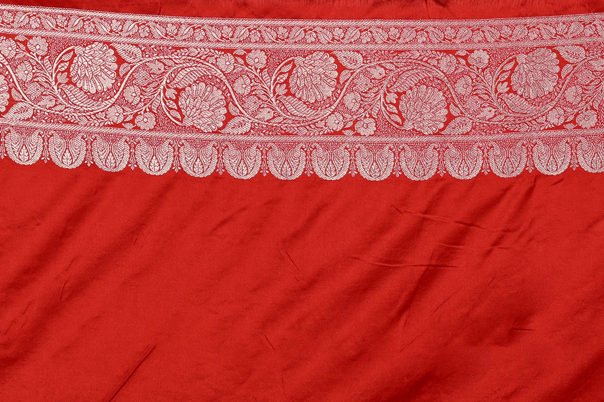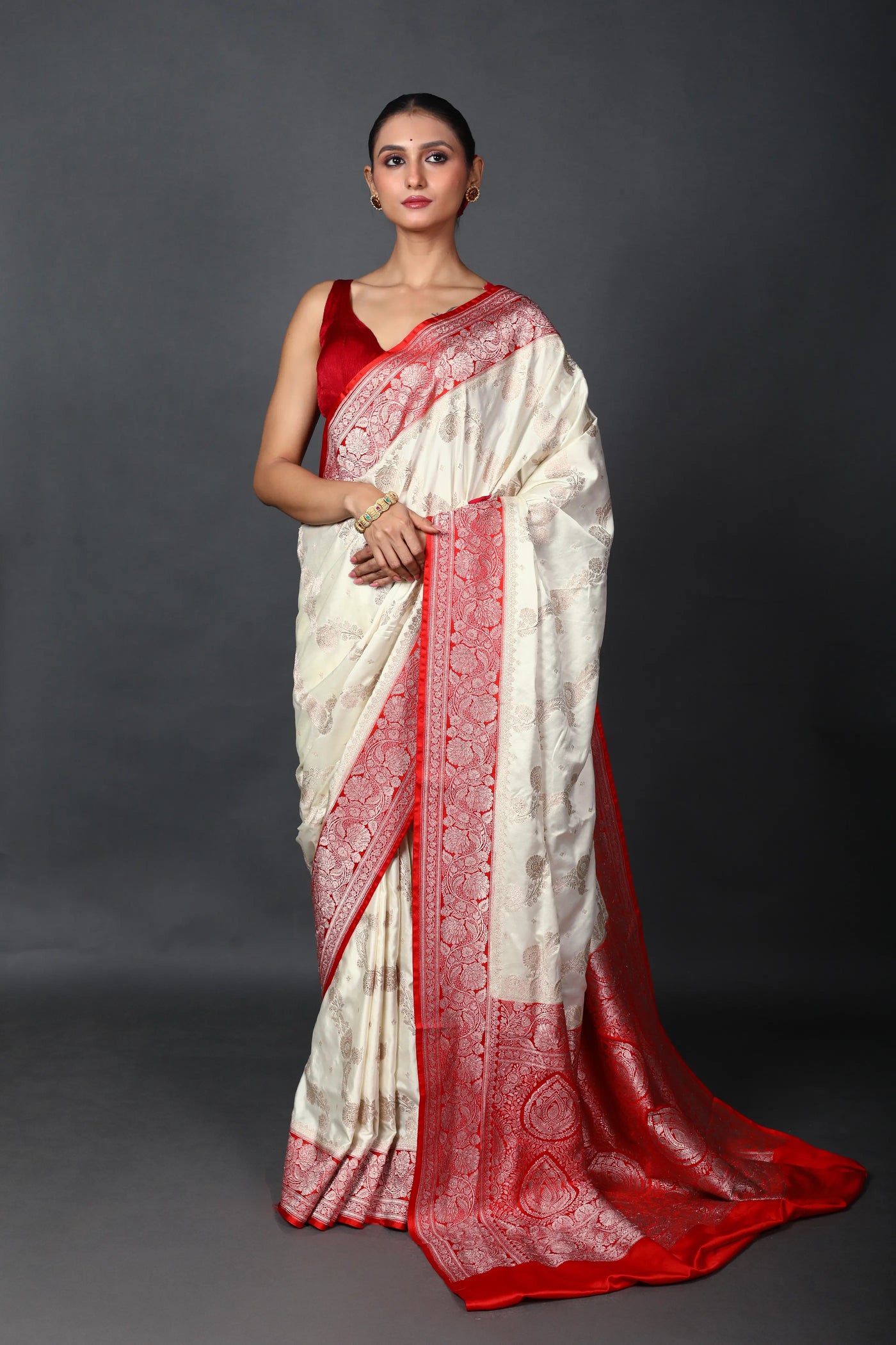 Red & White Blended Katan Banarasi Saree With Blouse Piece – Ethnic Boutique