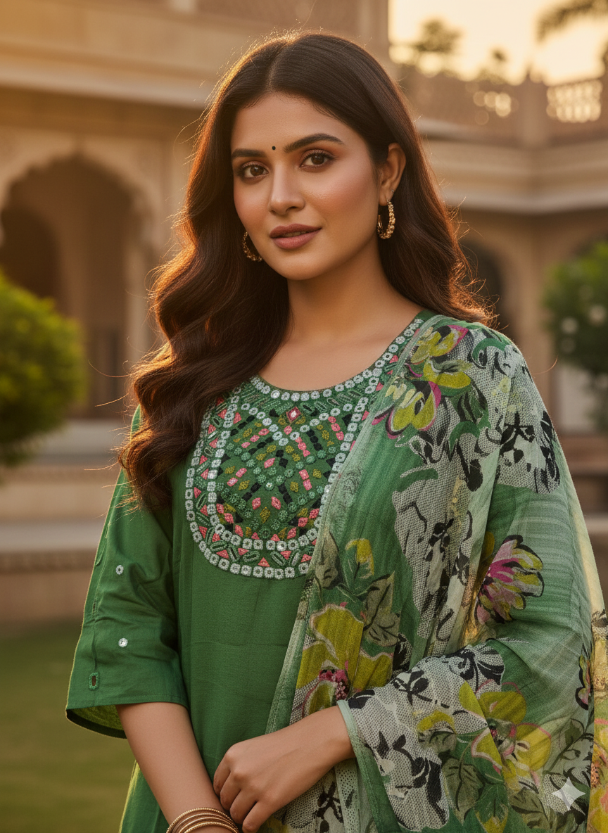 Cotton Hand Work 3PC Kurti Set – Ethnic Boutique
