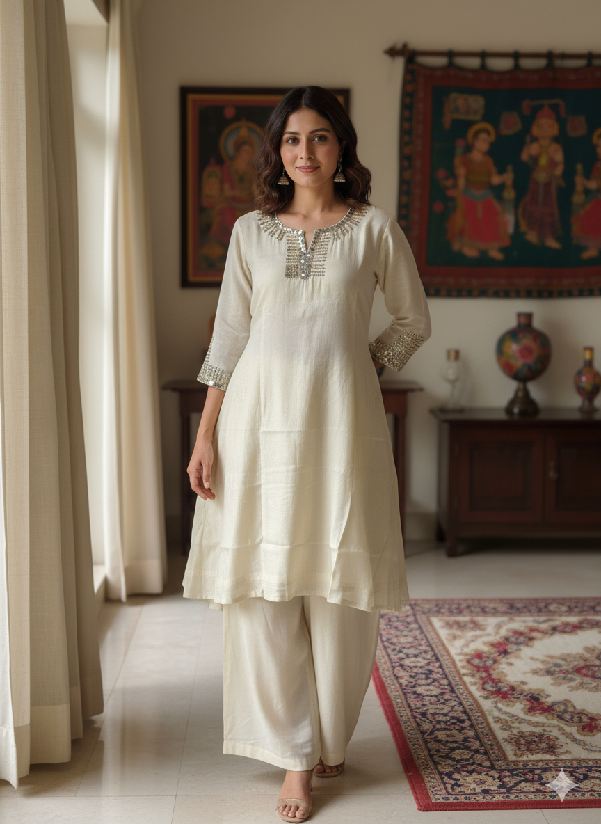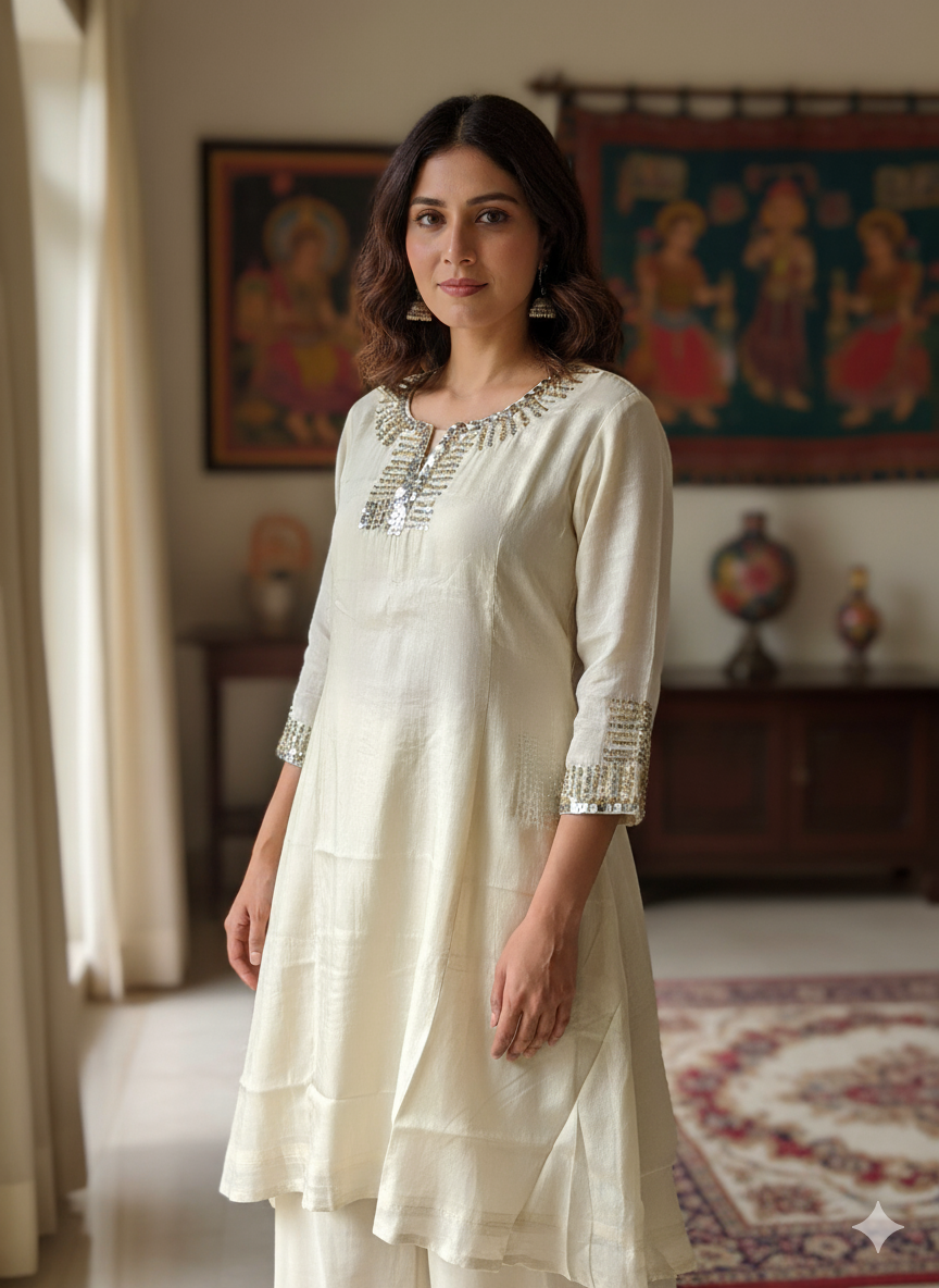 Russian Silk Zardosi Work 2PC Kurti Set – Ethnic Boutique