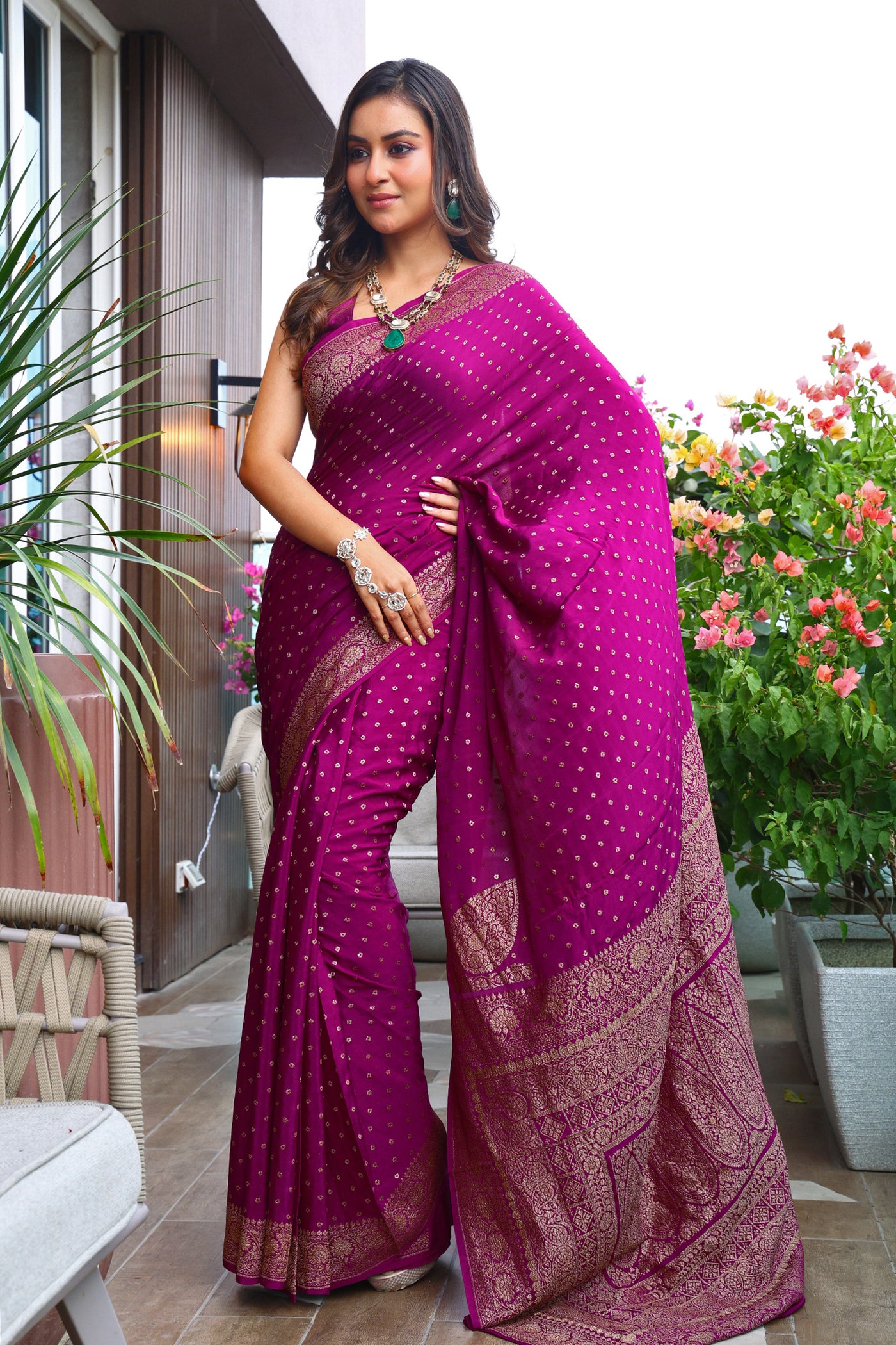 Dry clean only to maintain the integrity of the fabric and zari work.