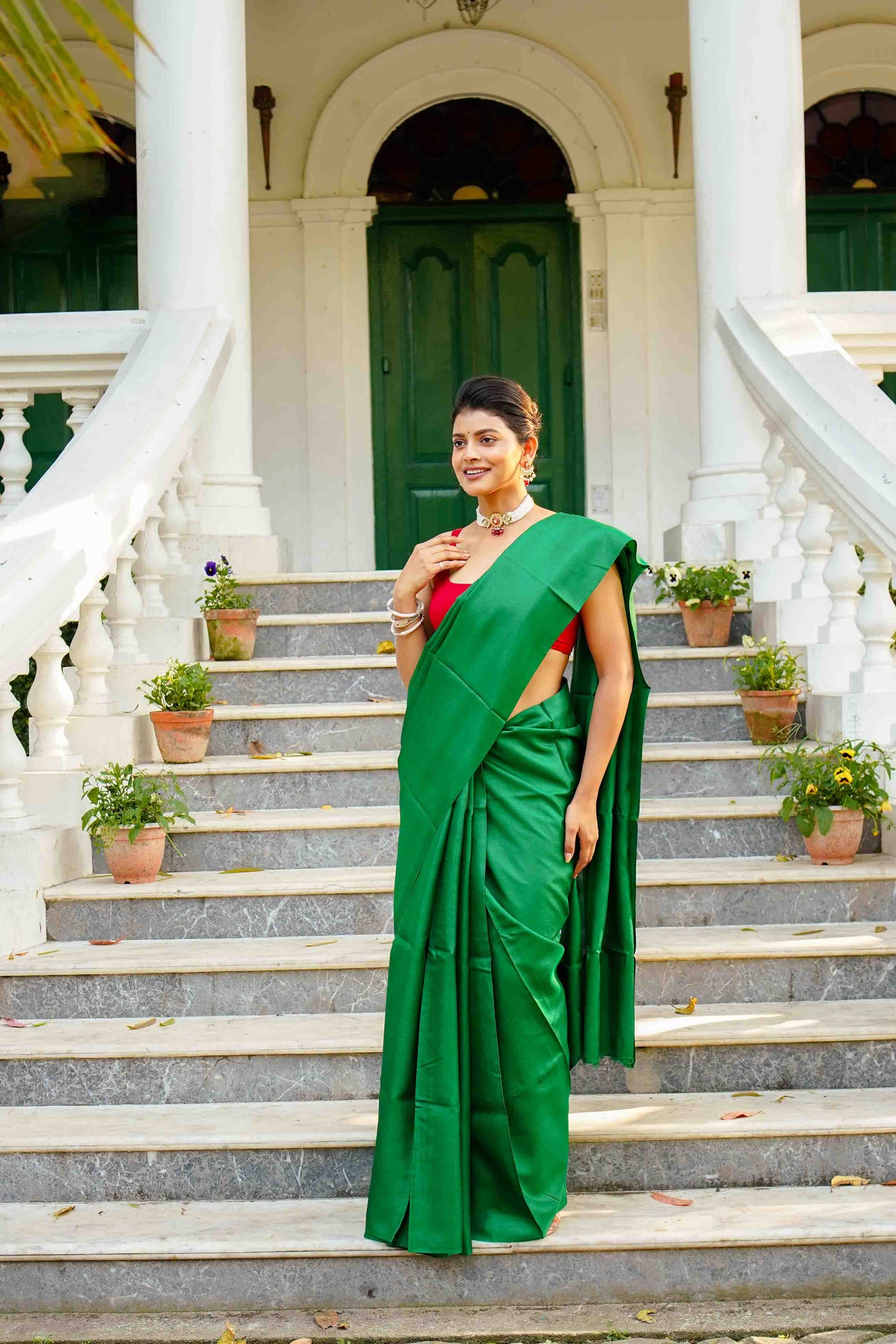 Bottle Green Tussar Saree With Blouse Piece – Ethnic Boutique