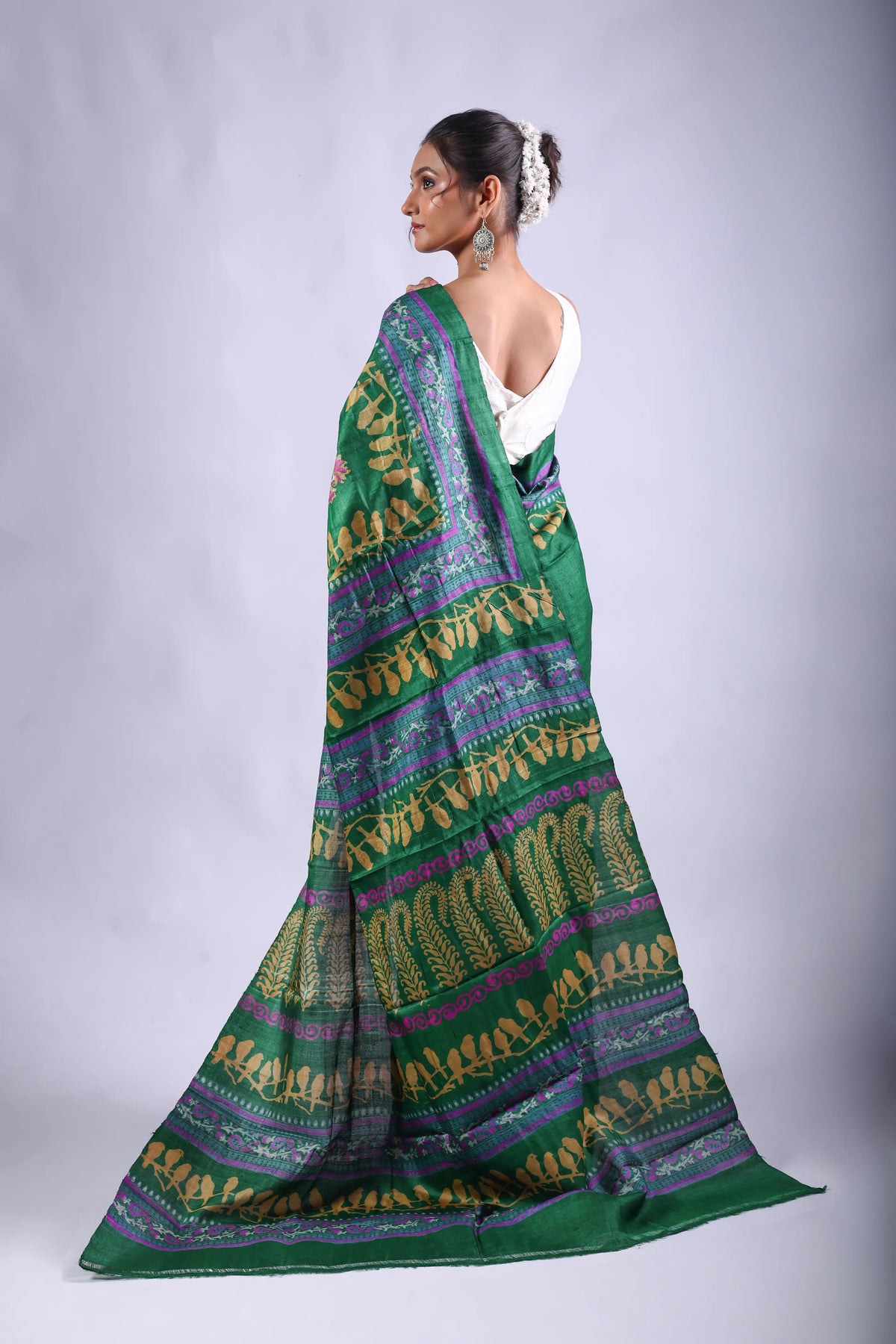 Green Tussar Saree With Blouse Piece – Ethnic Boutique