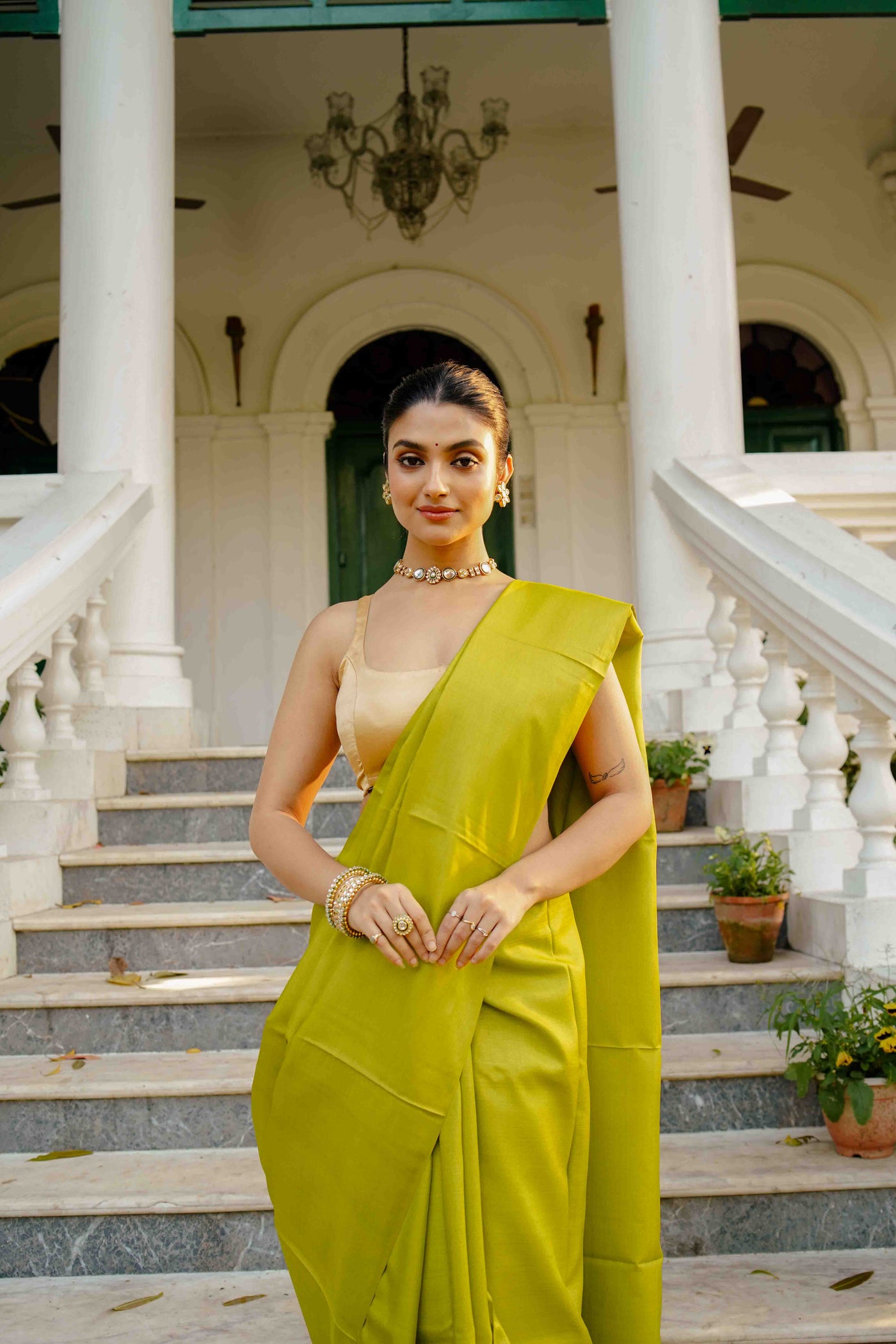 Lime Green Tussar Saree With Blouse Piece – Ethnic Boutique