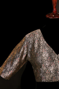Color & Shine: Katan silk typically has a glossy finish which adds to the overall allure of the blouse. Brocade, especially when made with metallic threads like gold or silver, has a radiant sheen. The result is a blouse that is not only visually stunning but also catches light in a mesmerizing way.