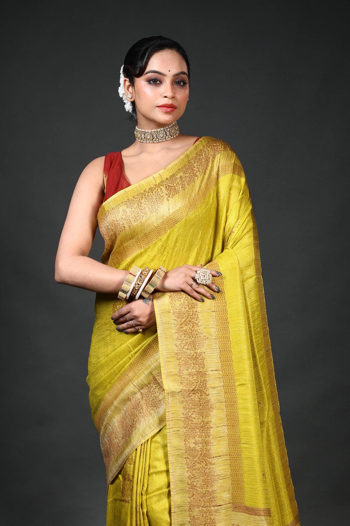 Light Olive Green Semi Raw Silk Banarasi Saree With Blouse Piece – Ethnic Boutique