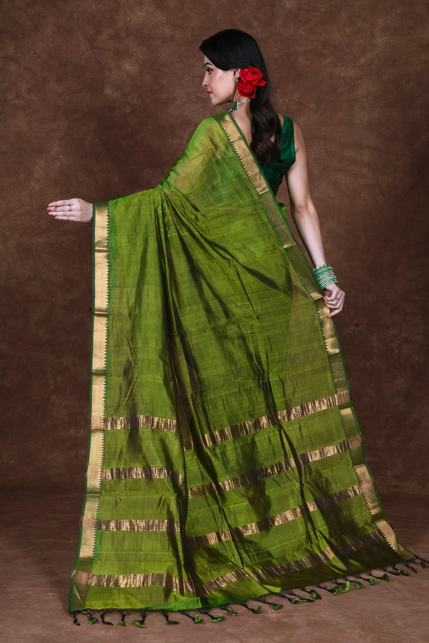 - The fabric is also known for its simple yet elegant borders, often with contrast colors, making it a popular choice for sarees, blouses, and other traditional wear.