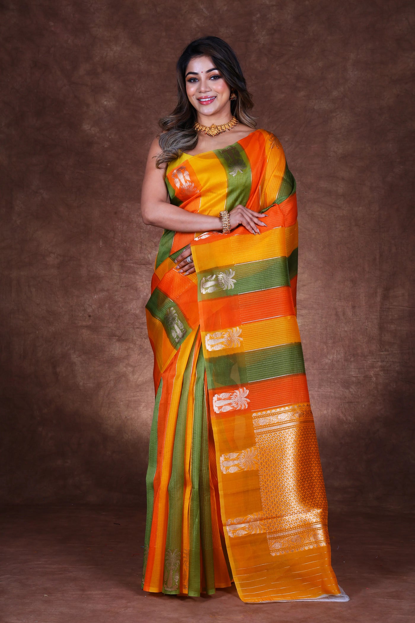 Multi Color Kora Banarasi Saree With Blouse Piece – Ethnic Boutique
