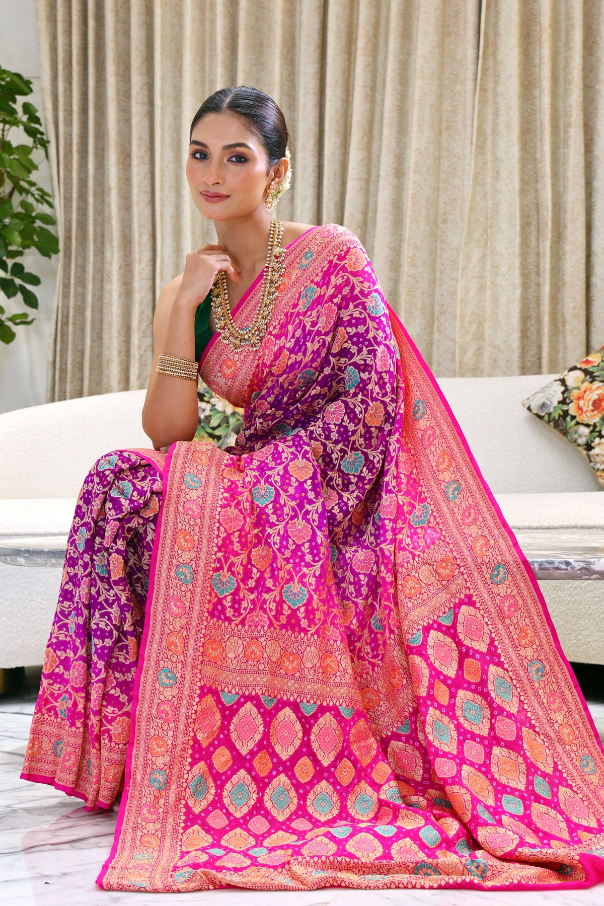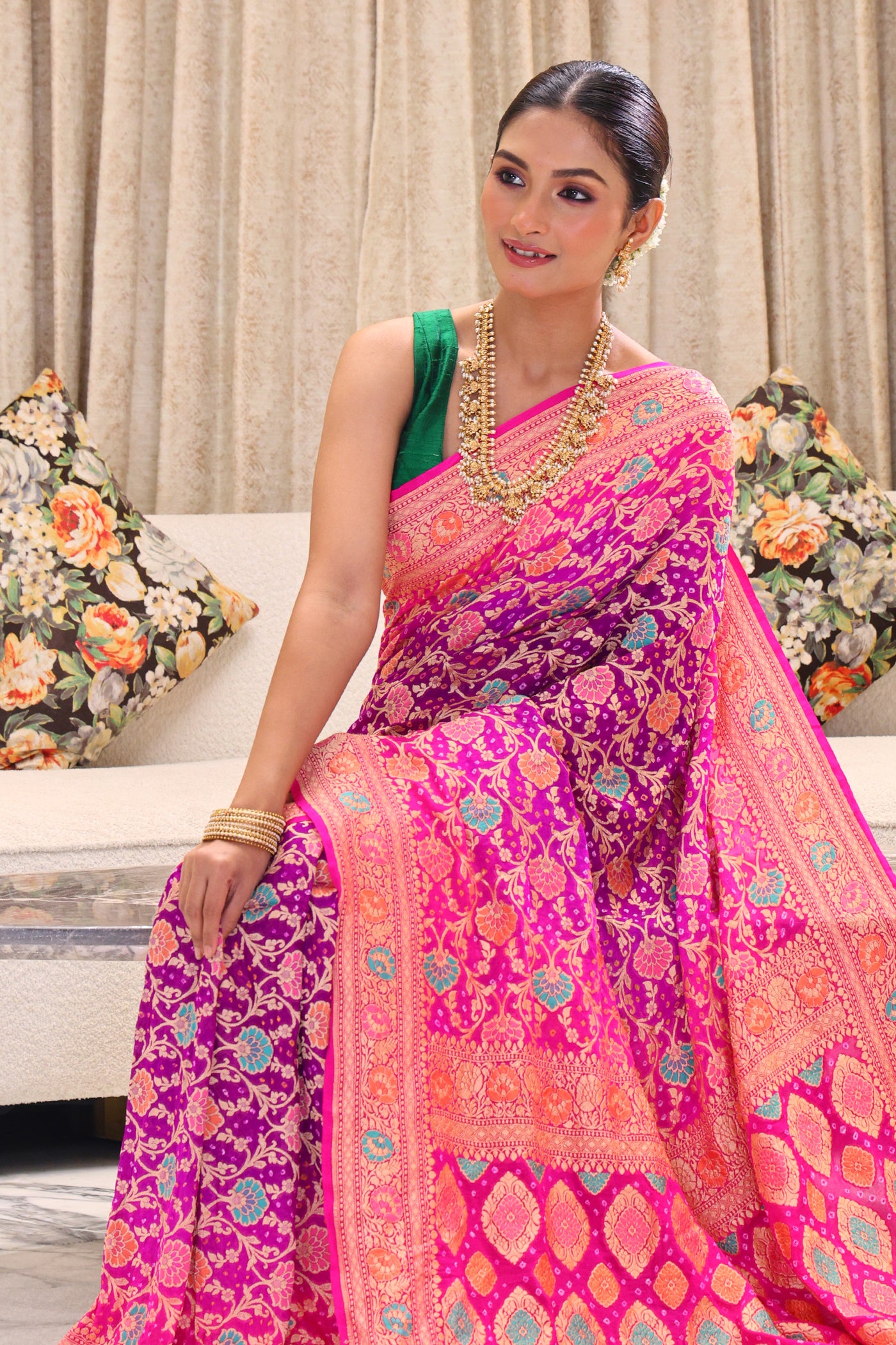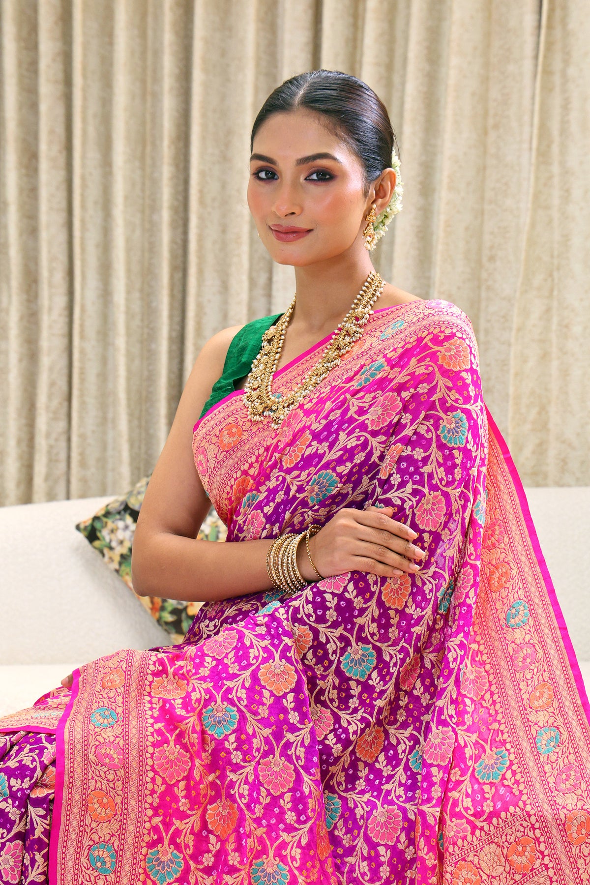 Design & Appearance: These sarees are known for their vibrant colors and unique patterns, often with multiple color layers created by the tie-dye process.