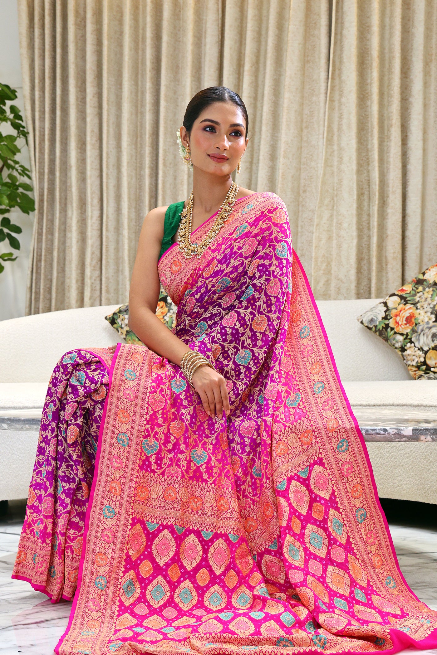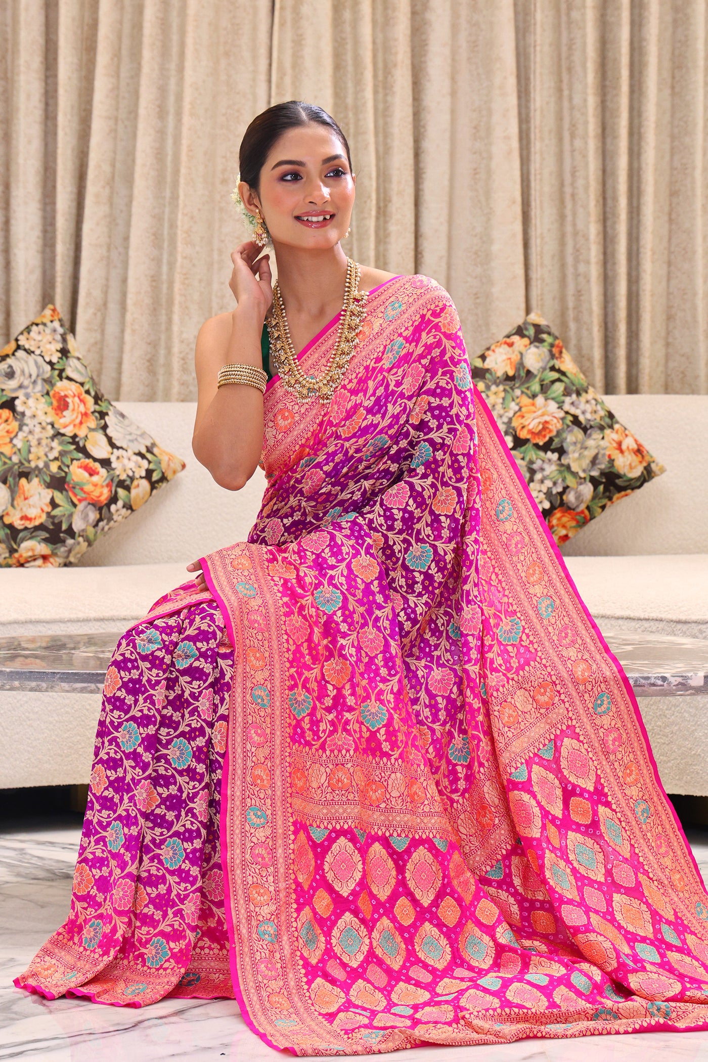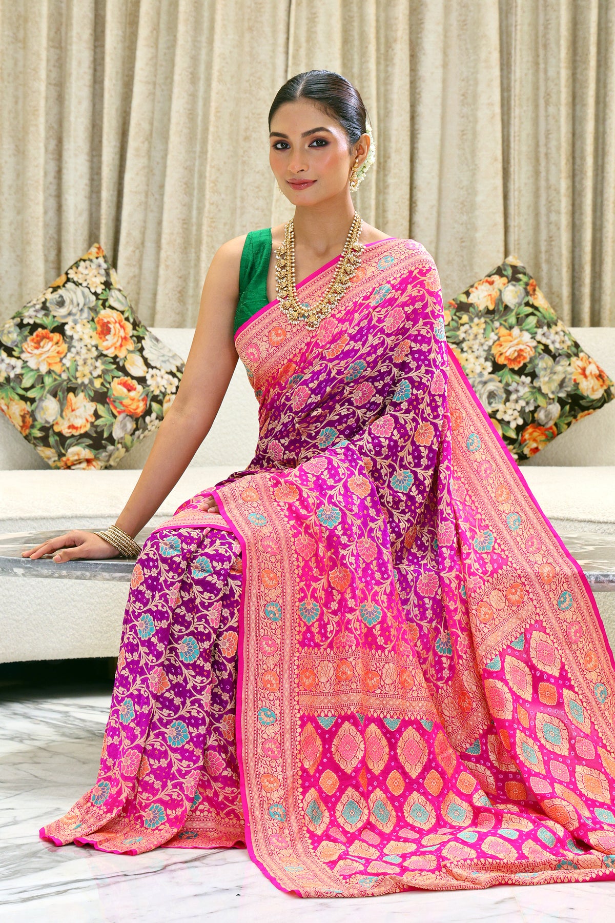 Design & Appearance: These sarees are known for their vibrant colors and unique patterns, often with multiple color layers created by the tie-dye process.