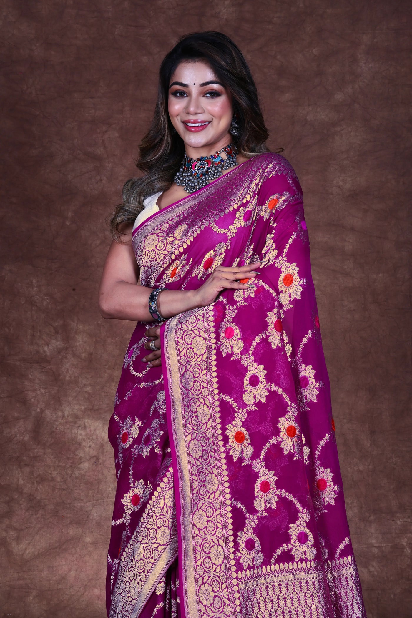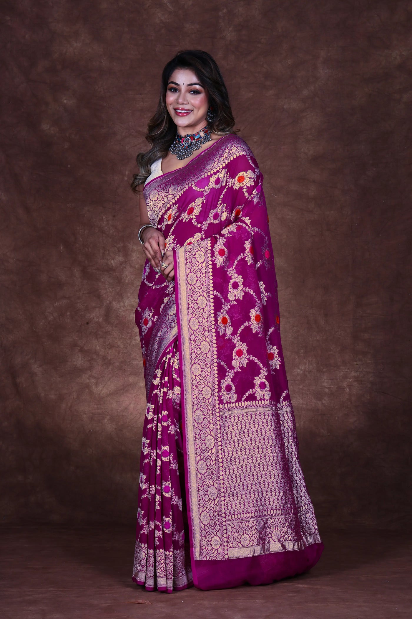 Purple Georgette Banarasi Saree With Blouse Piece – Ethnic Boutique