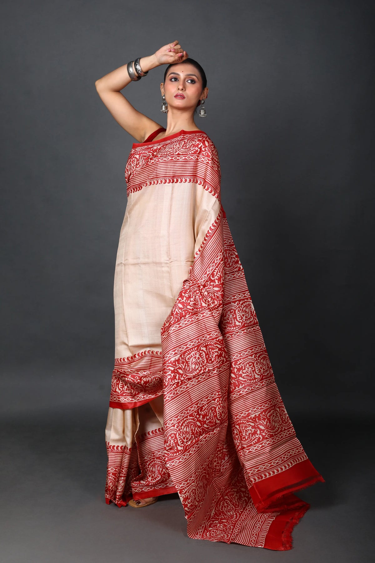 Red & Off White Tussar Saree With Blouse Piece – Ethnic Boutique
